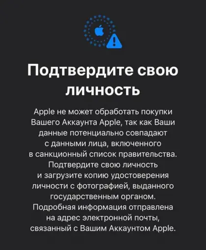 Россияне жалуются, что Apple вводит ограничения на аккаунты. Причиной компания называет возможные совпадения с данными людей, которые подпали под санкции США или других стран.