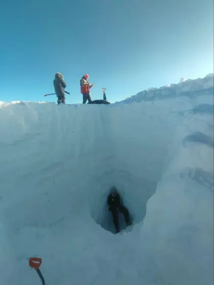 Такие шурфы необходимы полярникам станции «Восток», самой холодной и самой изолированной из-за тяжелых климатических условий российской антарктической станции, для измерения плотности и прочности верхнего пятиметрового слоя снега и фирна — плотного, слежавшегося зернистого снега. ❄️