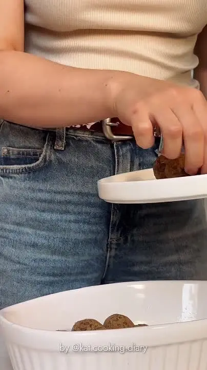 4️⃣ Форму для запекания смазать оставшимся маслом, выложить тефтельки, слегка сбрызнуть маслом.