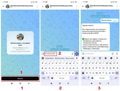 2. Отправьте любое текстовое сообщение. Например, воспитатель (см. фото 2).