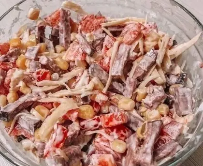 Салат из разряда «Гости на пороге»😁Ничего варить или жарить не нужно! Порезал, перемешал и готово!
