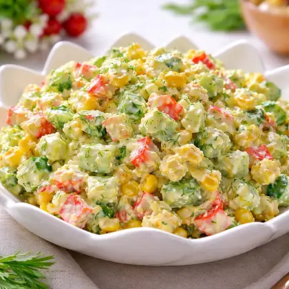 Этот салат быстро становится «дежурным фаворитом»: готовится просто, продукты доступны, а результат стабильно вызывает восторг за столом.