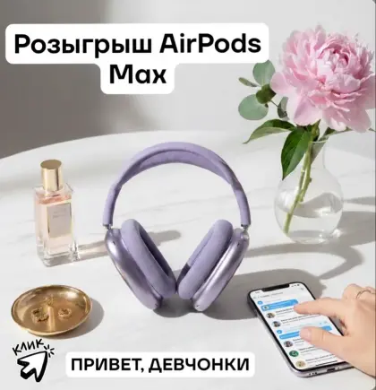 Админы уютного женского сообщества дарят наушники AirPods Max самого нежного трендового цвета за подписку на их канал в MAX ПРИВЕТ, ДЕВЧОНКИ.