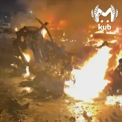 Обломки БПЛА посекли многоэтажку, загорелись припаркованные с домом автомобили. По предварительной информации, сгорело 15 машин, пострадало 25.