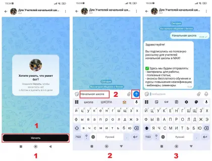 2. Отправьте любое текстовое сообщение. Например, Школа (см. фото 2).