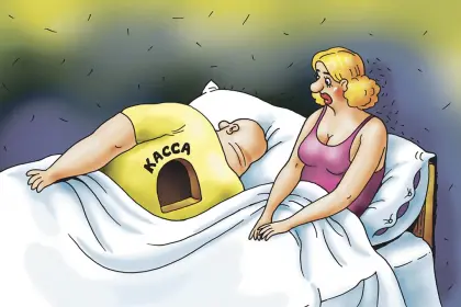 Первая брачная ночь. Он к ней — она от него, он к