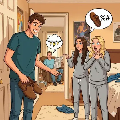 Батя попросил меня принести ему тапки. Пока шел, в голове созрел адский план. Захожу к сестре, а к ней как раз подружка пришла, и говорю: