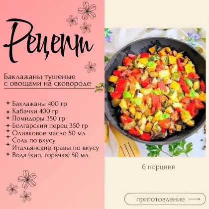 Баклажаны тушеные с овощами на сковороде🥗🍆