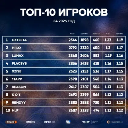 ТОП-10 игроков по рейтингу за весь 2025 год 💥✅