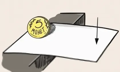 Придавленный монеткой лист бумаги, на 3/4 свисает со стола. Если ударить по свисающему краю листа со всей силы, сдвинется ли монетка с места?
