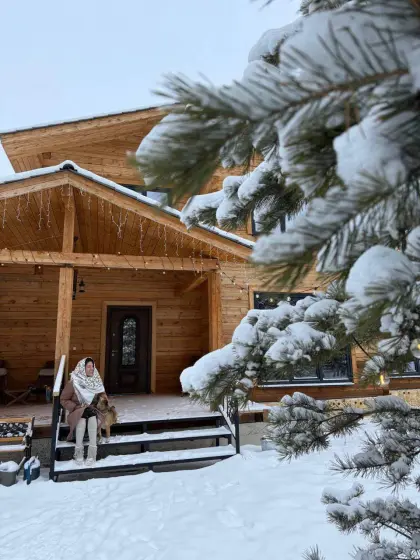 Таня с мужем построили дом прямо в лесу, такой красивущий – загляденье! Полностью из дерева, что для нас необычно. Пейзажи восхитительные! В прошлом году переехали, Таня рассказывает, как они переживают суровые морозы по -40°