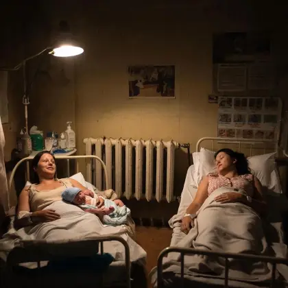 Родила. Лежу в плате. Вдруг без стука вваливаются два мужика. Небритые, грязные и в тельняшках. Молча идут к кровати у окна, где спит девочка после тяжелых родов.