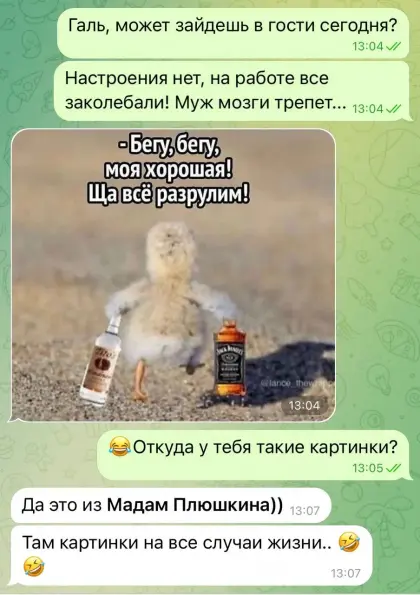 🍷 Мадам Плюшкина - здесь картинки на все случаи жизни. Уже 2 твоих подруги подписаны👇