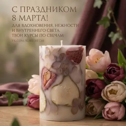 Дорогие свечные мастерицы, с 8 Марта! 🌷В этот день хочется говорить о красоте — той, что вы создаёте своими руками. Каждая ваша свеча — это маленькое чудо, в которое вложены тепло, терпение и душа.